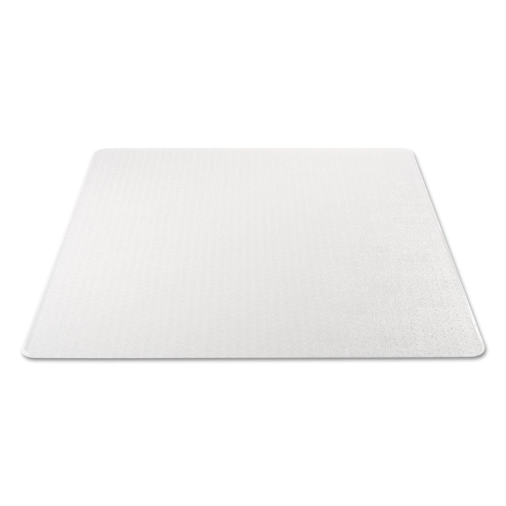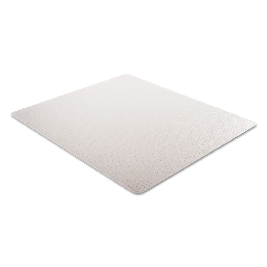 Studded design secures mat from moving while protecting carpet from caster wear, spills and heavy traffic. Medium weight chair mat for frequent use on carpets up to 1/2" thick. Smooth beveled edge for easy carpet to mat transition. Non-orthophthalate, non-cadmium formula promotes a healthy work environment while offering exceptional clarity and durability.