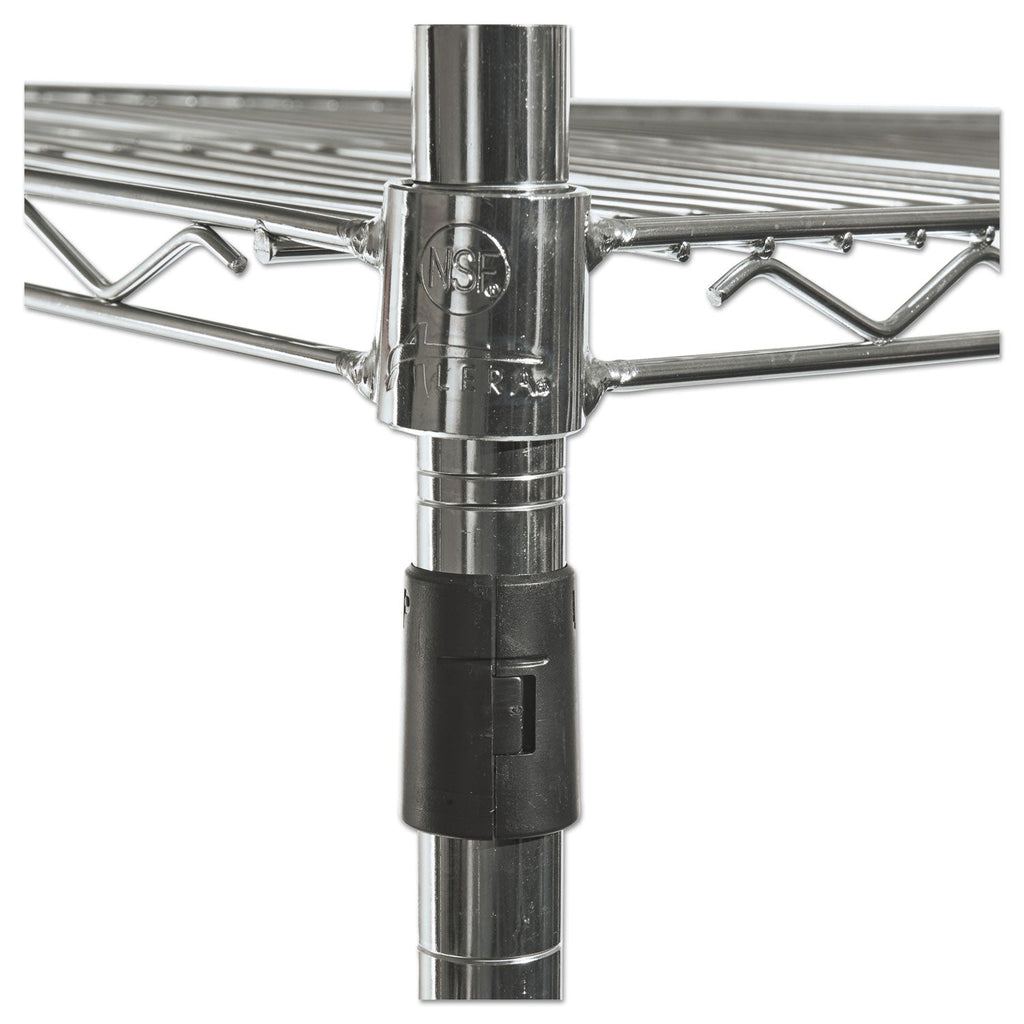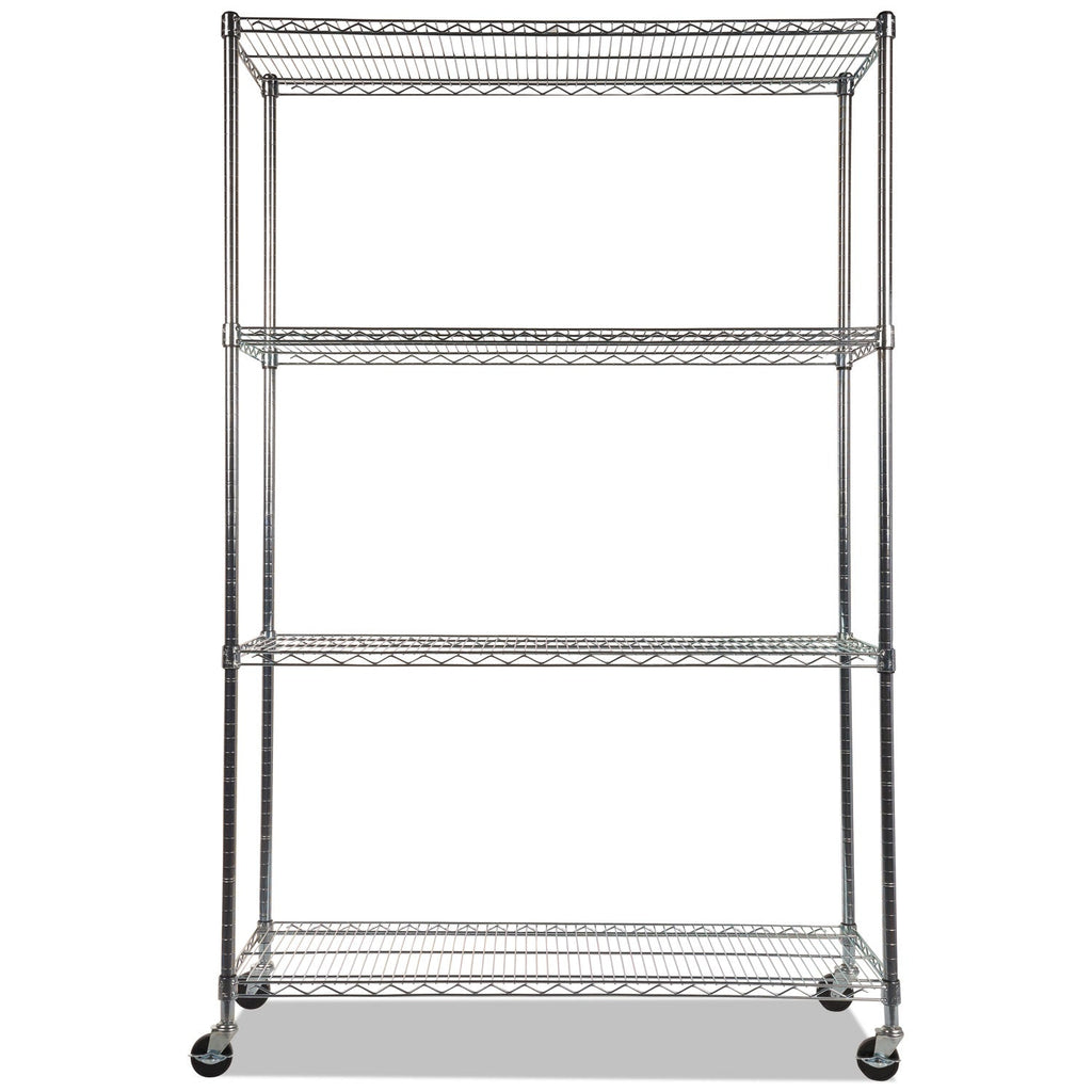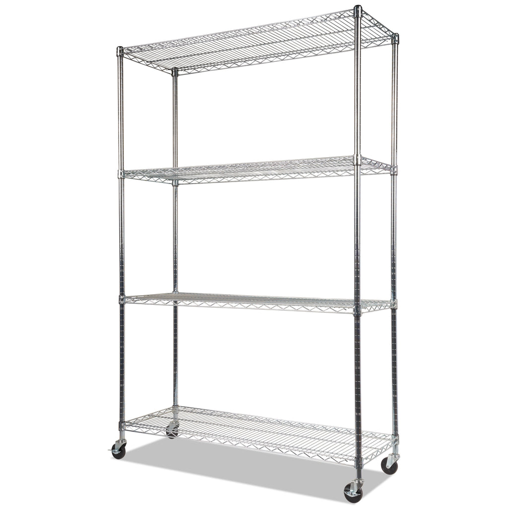 Sturdy and solid shelving for business or restaurant environments. Includes four shelves, posts, shelf clips, leveling glides, and four 3" casters (two locking).