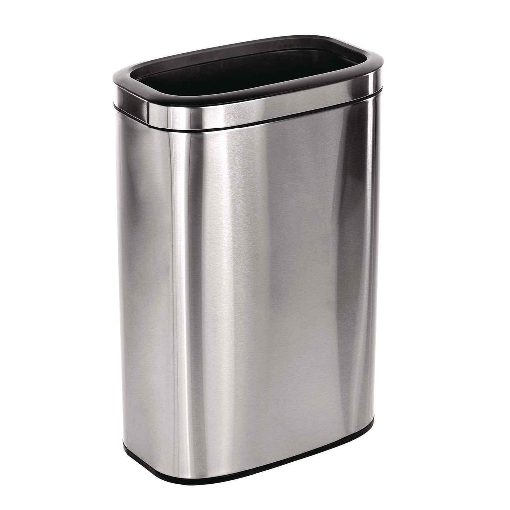- Expertly constructed using durable, brushed stainless steel, this slim open trash can will hold up well against everyday wear and tear to make it ideal for frequented locations.