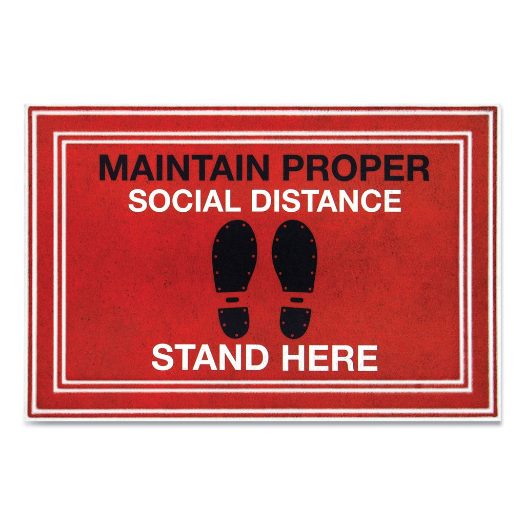 Apache Mills® Message Floor Mats, 24 X 36, Red/black, "maintain Social Distance Stand Here"