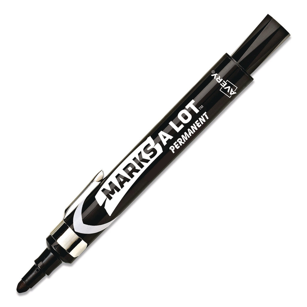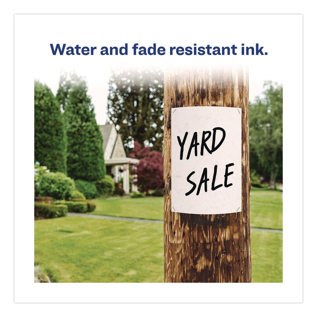 Sturdy metal clip for convenient access on the go. Durable bullet tip. Bold, low-odor ink provides high visibility from a distance on most surfaces. Permanent ink is quick-drying, water-and rub-resistant. Low-odor and non-toxic.
