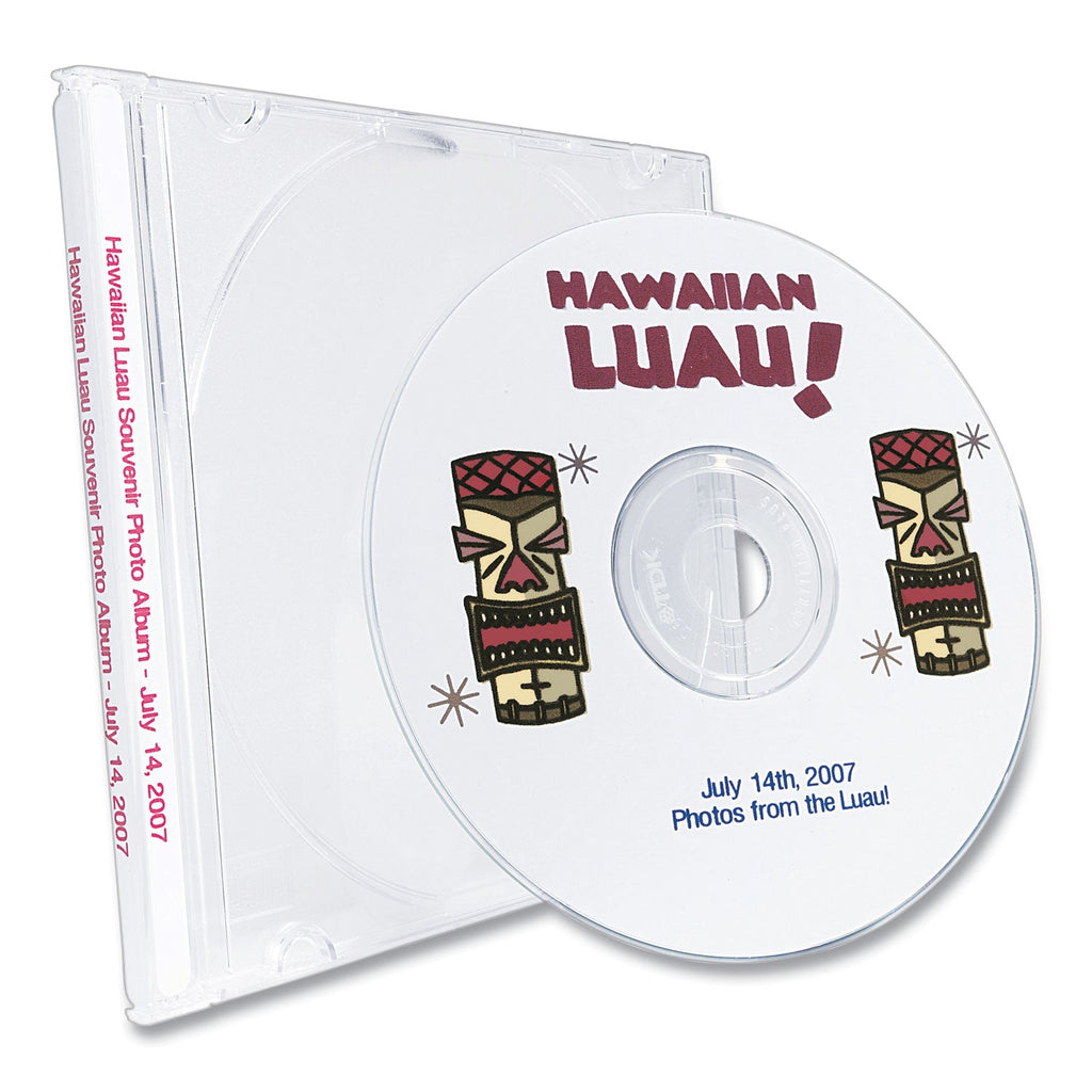 - Labels feature a unique, patented design which centers labels using a standard jewel case.