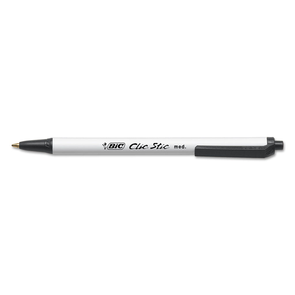 BIC® Clic Stic Ballpoint Pen Value Pack, Retractable, Medium 1 Mm, Black Ink, White Barrel, 24/pack