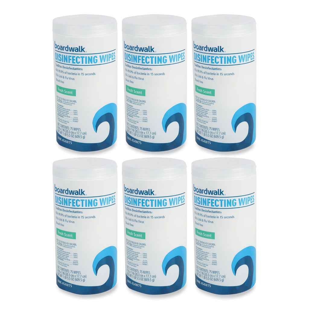 Boardwalk® Quat-Based Disinfecting Wipes, 7 x 8, Fresh Scent, 75/Canister, 6 Canisters/Carton