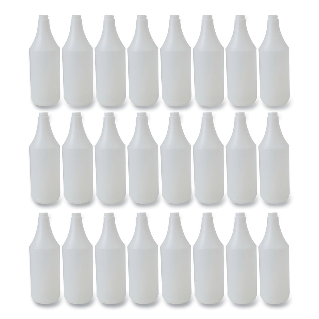 Clear bottle with embossed scale encourages user to properly proportion chemicals from larger containers and when mixed with water. Sleek, tapered neck bottle provides a more comfortable grip when used with a trigger sprayer. Easy-to-use, multi-purpose bottle for general-purpose cleaning in kitchens, bathrooms, offices, schools, and industrial settings. Securely holds cleaning solvents and water without spilling. Trigger sprayers sold separately.