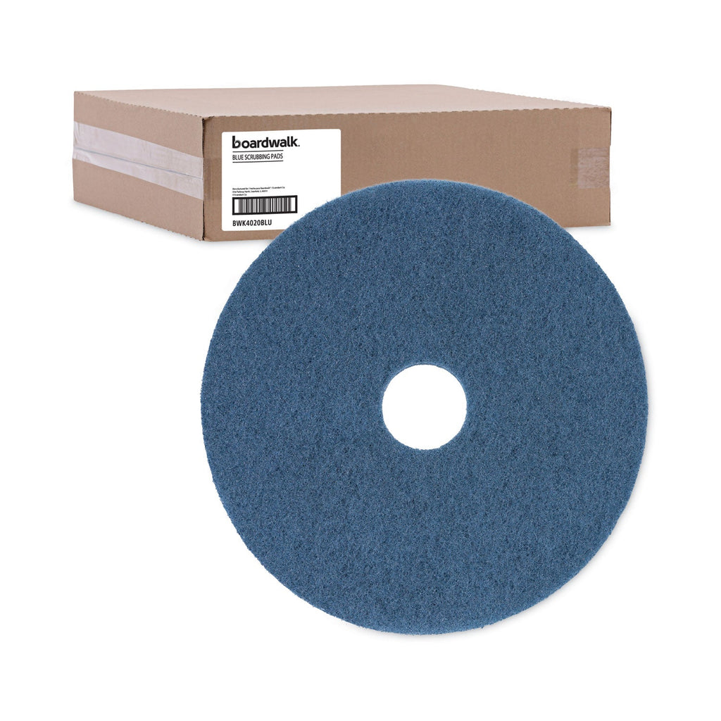 Boardwalk® Scrubbing Floor Pads, 20" Diameter, Blue, 5/carton