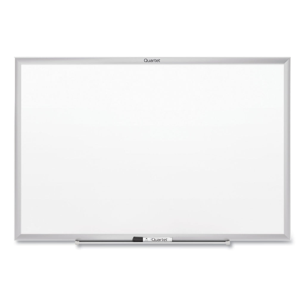 Board has a durable, hydrophobic surface coating that prevents ink from penetrating the surface. Magnetic surface for posting documents. Frame is sturdy and stylish. Includes mounting hardware, marker tray and one Quartet® dry-erase marker.