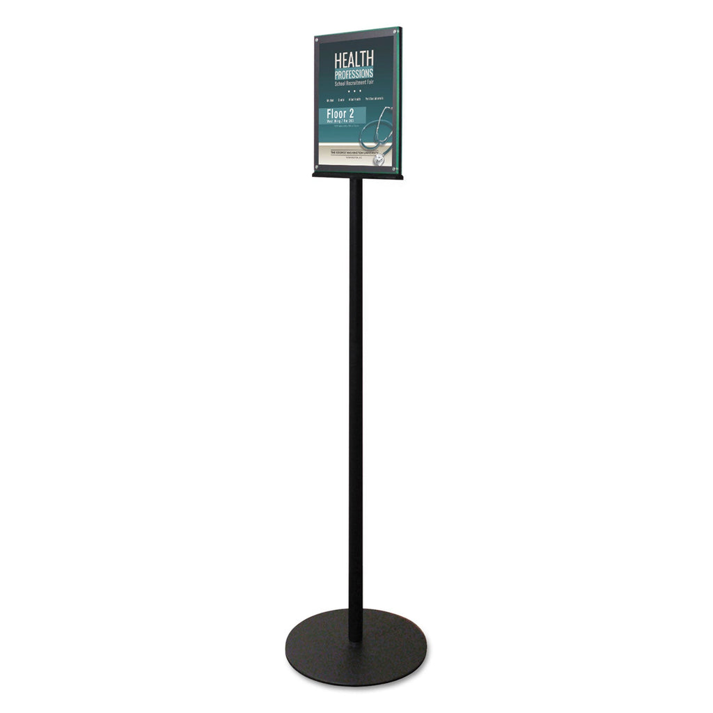 Double-sided floor stand allows front and back display. Patented magnetic panels provide easy access for quick and easy sign changes. Weighted base. Made from acrylic. Light assembly required.