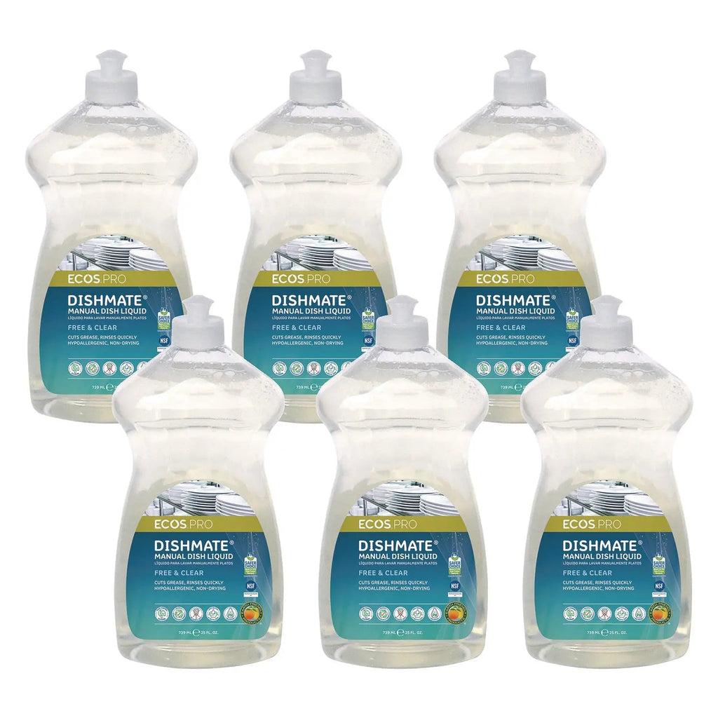 ECOS® PRO Dishmate Manual Dish Liquid, Free and Clear, 25 oz Squeeze Bottle, 6/Carton