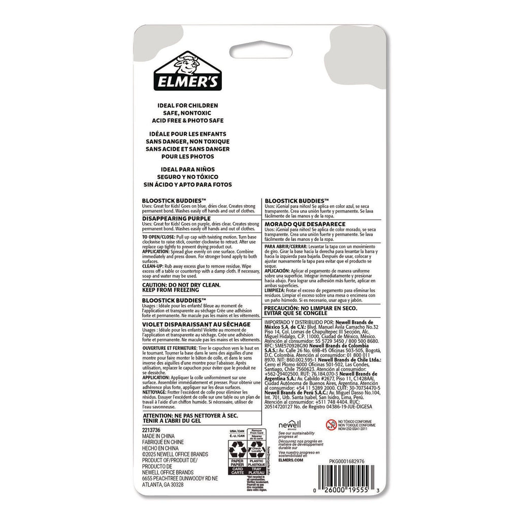 See exactly where you're applying adhesive with this combo pack of Elmer's Glue Sticks! First, you'll get a set of Elmer's BlooStick Buddies Glue Sticks to turn up the fun on any arts, crafts, or school project! Each cap of these school glue sticks highlights a special character with their own unique personality. The playful ears double as an anti-roll device while the funny face on each cap will encourage kids to keep the cap on when not in use. Best of all, these glue sticks go on blue and dry clear. You'll also receive a set of Disappearing Purple Glue Sticks, that do the same, but in purple! All Elmer's glue sticks in this pack are safe, washable, and nontoxic, perfect for school or home.