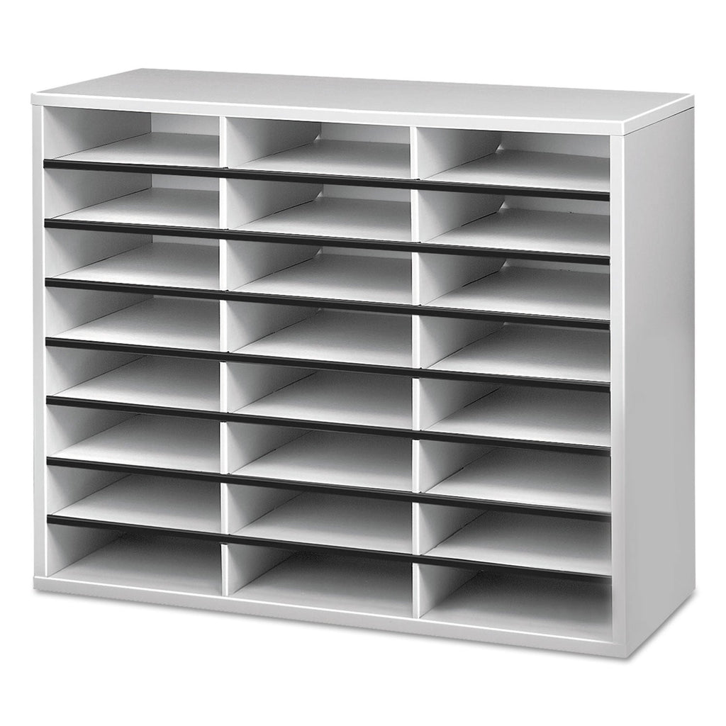 Keep sales literature, mail and forms organized. Corrugated divider system with high-strength frame. Fast, easy assembly. Includes plastic finishing channels and self-adhesive labels.