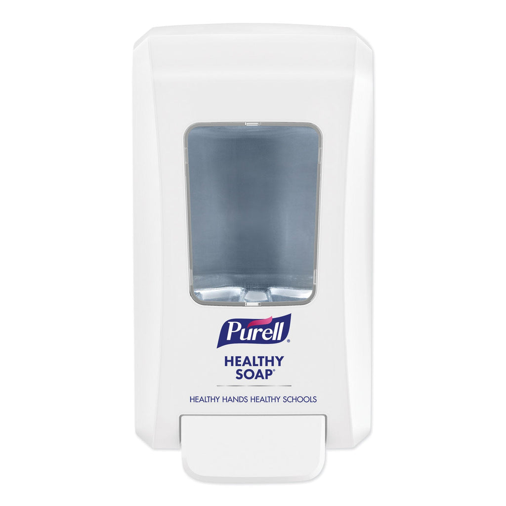 High-capacity push-style foam soap dispenser needs refill changes less often. Large sight window makes it easy to check refill level.