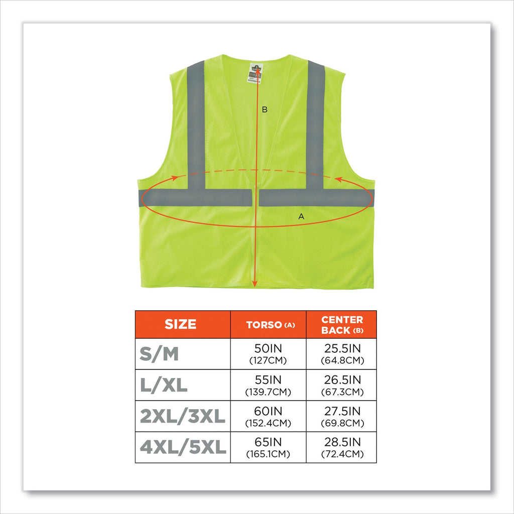 ergodyne® GloWear 8205Z Class 2 Super Economy Mesh Vest, Polyester, Lime, Small/Medium