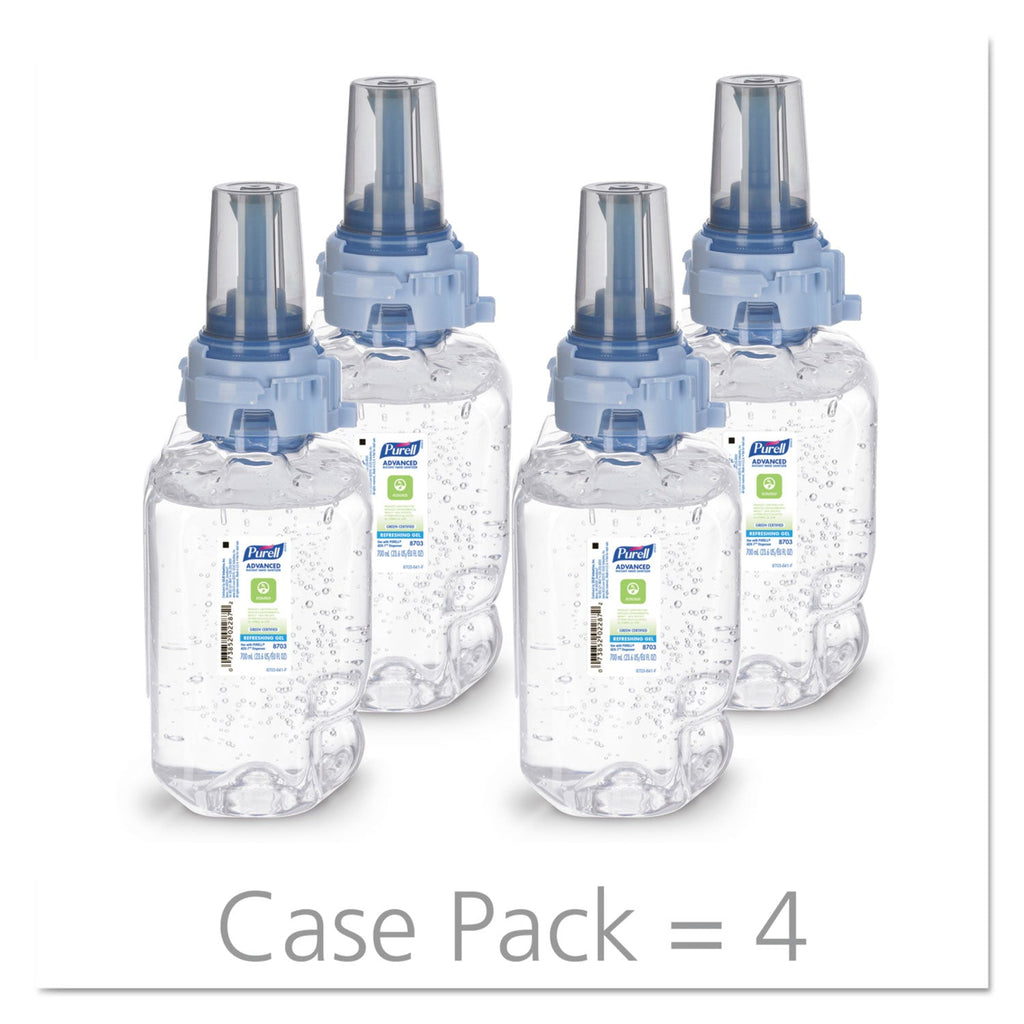 PURELL® Advanced Hand Sanitizer Green Certified Gel Refill, For ADX-7 Dispensers, 700 mL, Fragrance-Free, 4/Carton