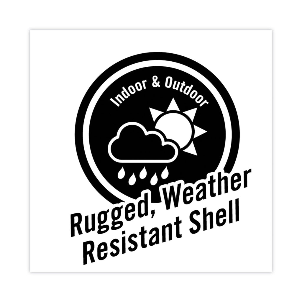 - Rugged, weather-resistant shell withstands moisture, UV rays and temperature changes.