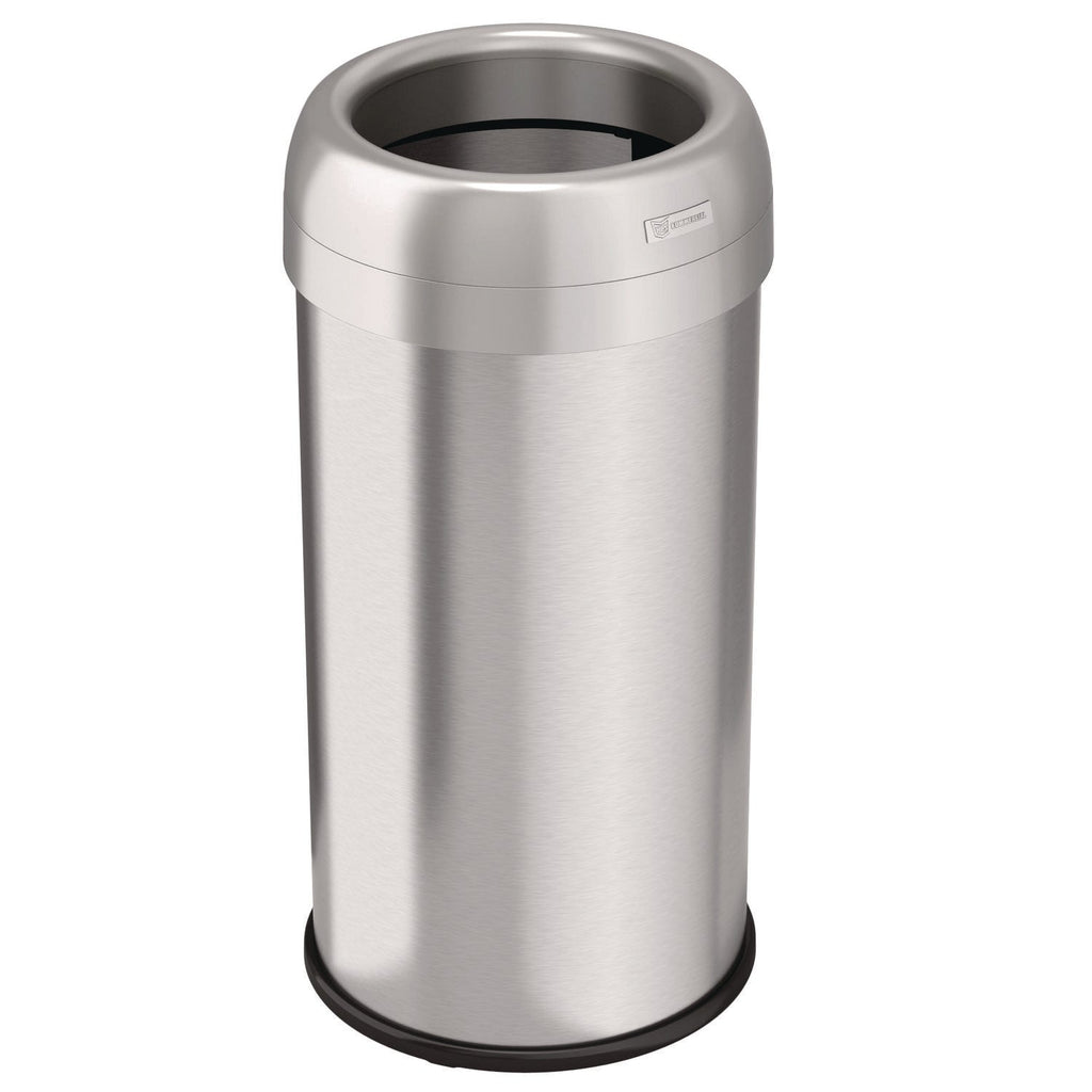 HLS Commercial® Open Top Trash Can, Round, 16 gal, Plastic/Stainless Steel, Silver