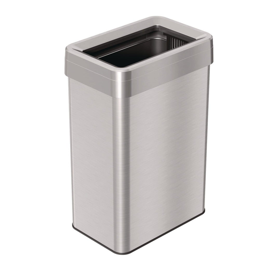HLS Commercial® Open Top Trash Can, Rectangular, 16 gal, Plastic/Stainless Steel, Silver