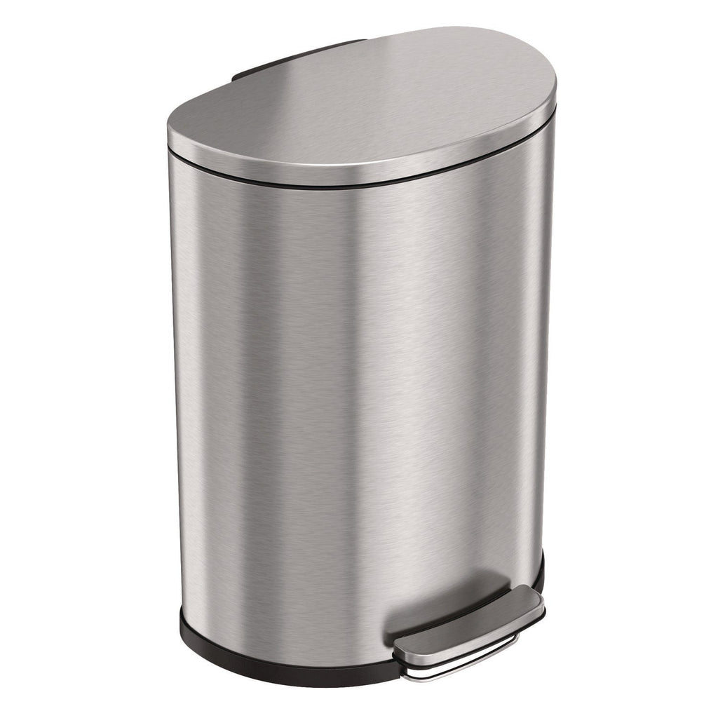 HLS Commercial® Step Pedal Trash Can, 13 gal, Half-Round Plastic/Stainless Steel, Silver