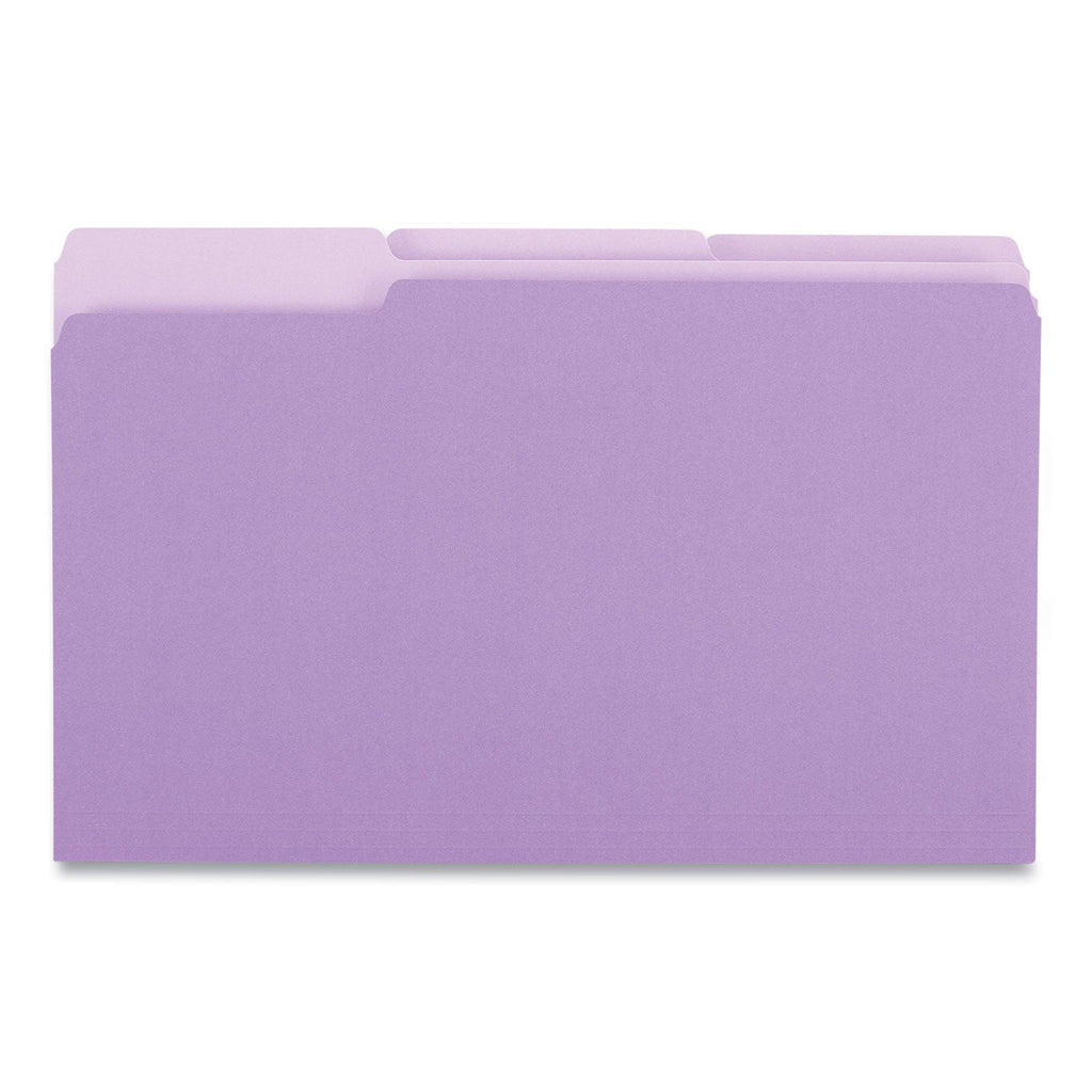 Universal® Interior File Folders, 1/3-Cut Tabs: Assorted, Legal Size, 11-pt Stock, Violet, 100/Box