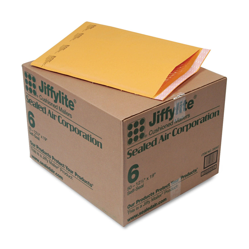 Sealed Air Jiffylite Self-Seal Bubble Mailer, #6, Barrier Bubble Air Cell Cushion, Self-Adhesive Closure, 12.5 x 19, Brown Kraft, 50/CT