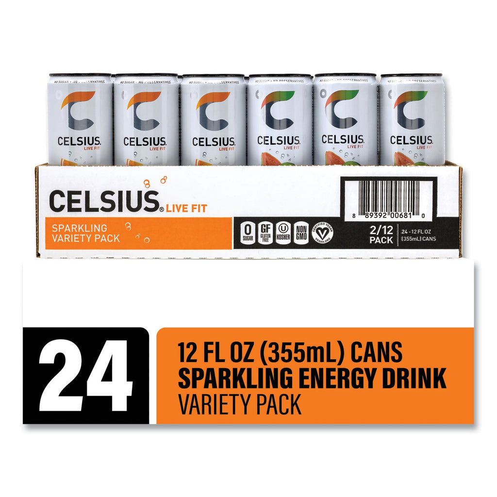 - Twelve cans of Celsius orange and 12 cans of Celsius kiwi guava.