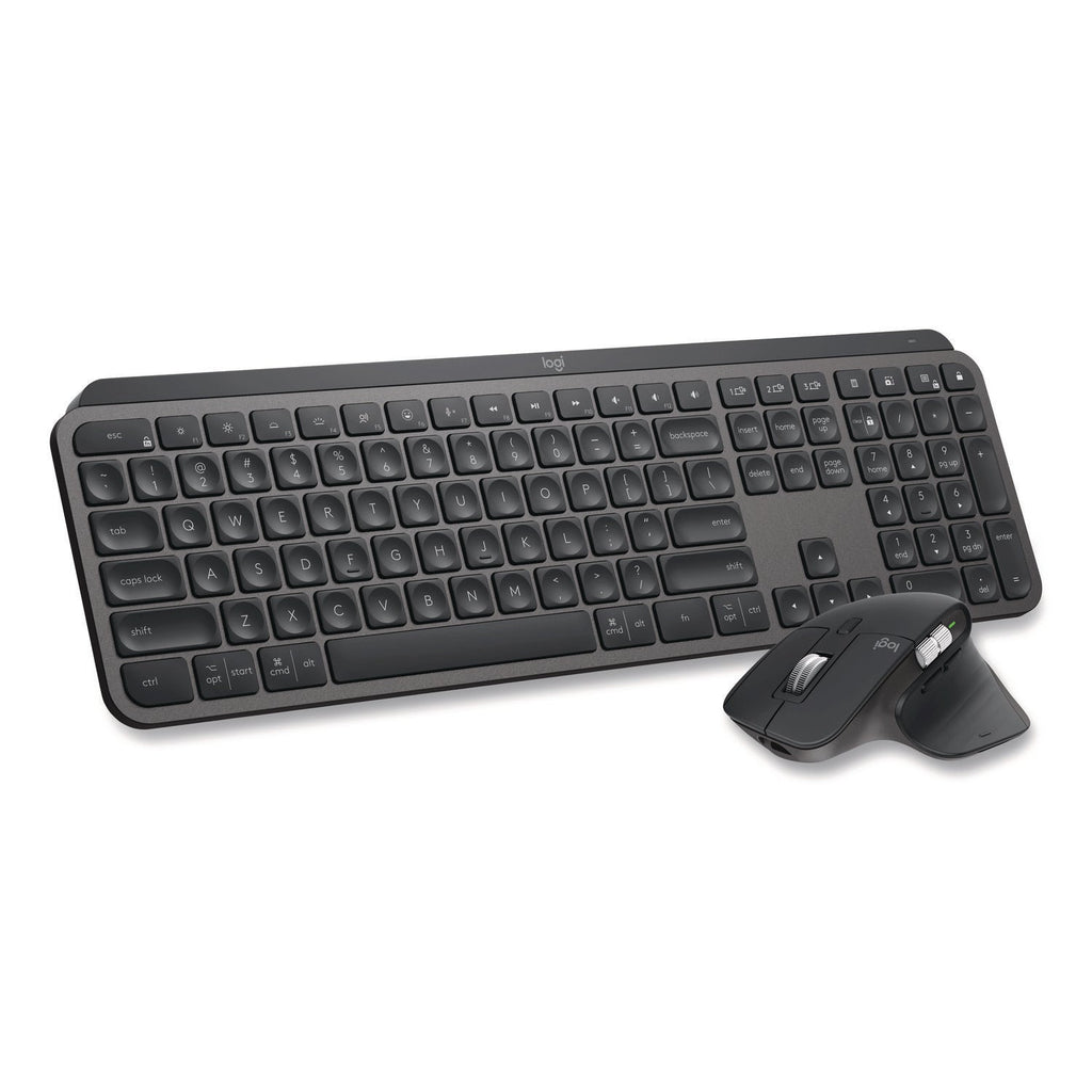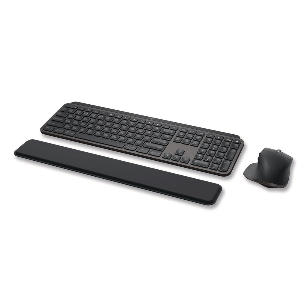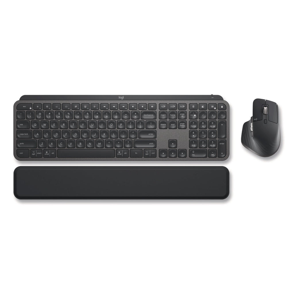 The ultimate performance combo, perfected. Our best keyboard and mouse, now even better and ready to perform. The keyboard's solid design uses a single metal plate for stability and quieter typing. While the perfectly-crafted full-size mouse contours to the shape of the hand for easy access to the buttons and scroll wheel. The included MX Palm Rest features a premium cushioned surface, designed as an ideal companion providing all-day comfort. The mouse works up to 70 days on a full charge, with three hours of use from a one-minute quick charge. The keyboard works for up to 10 days on a full charge€”or up to five months with backlighting turned off. Both work while charging for zero downtime. Combo includes one USB-C charging cable.