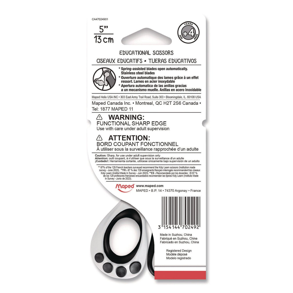 - These scissors teach kids how to cut safely, with a spring activated handle that automatically springs open for assisted cutting.