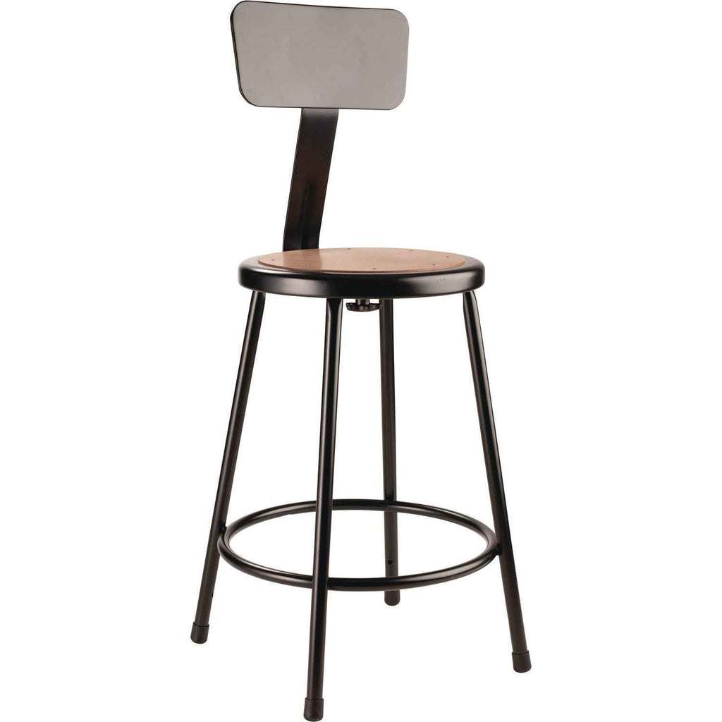 NPS® 6200 Series Heavy Duty Steel Stool With Backrest, Supports Up to 500 lb, 24" Seat Height, Brown Seat, Black Back/Base