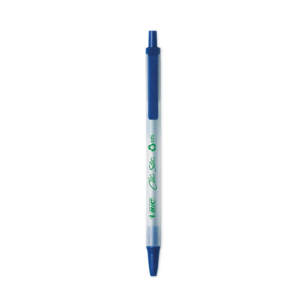 BIC® ReVolution Clic Stic Ballpoint Pen, Retractable, Medium 1 mm, Blue Ink, Translucent Frost/Blue Barrel, 48/Pack