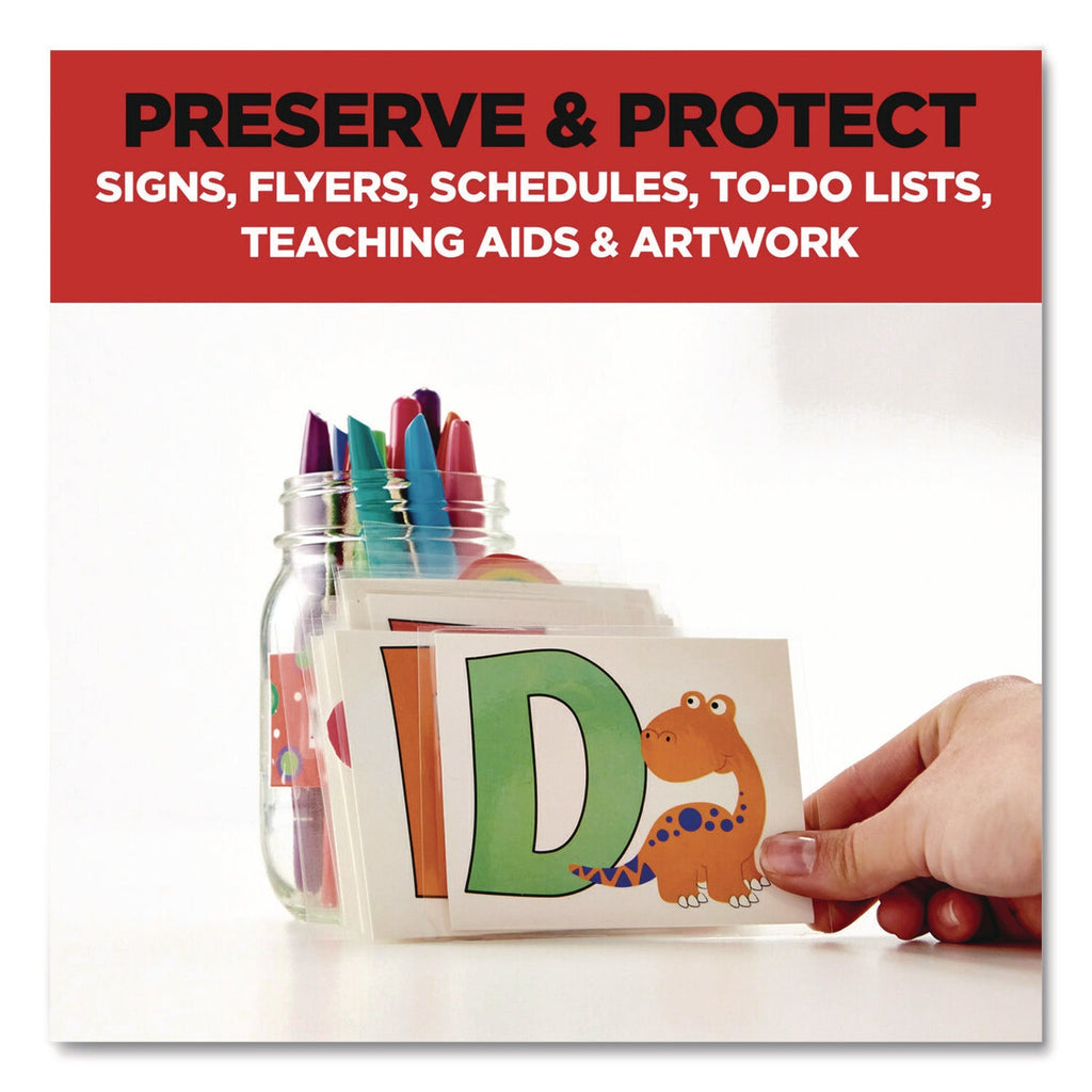 Scotch Laminating Pouches protect documents you handle frequently. They are for use with thermal laminators and create a permanent seal for long-term protection. Pouches are clear to let important information show through. Try other quality products from Scotch Brand for all your needs in the home and office.