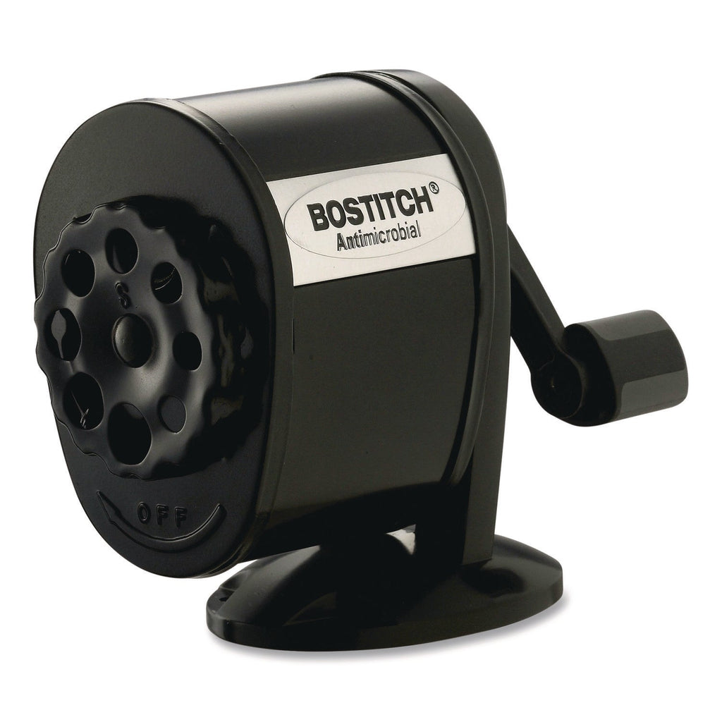 Recommended for school, personal or small office use. Traditional sharpening with modern conveniences. Antimicrobial protected pencil sharpener features an innovative replaceable cutter system that uses HHC2 cutters for a 6x longer life. Sturdy, all-metal construction with a die-cast metal base delivers lasting performance. Includes temporary and permanent mounting materials (table clamp and easy-mount base with screws). Oversized Kid Grip handle for easier sharpening for smaller hands while Tip Saver technology prevents over-sharpening and extends pencil life.