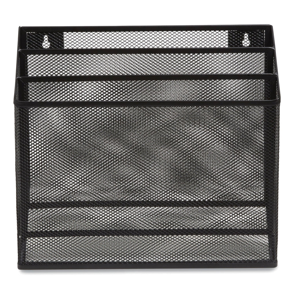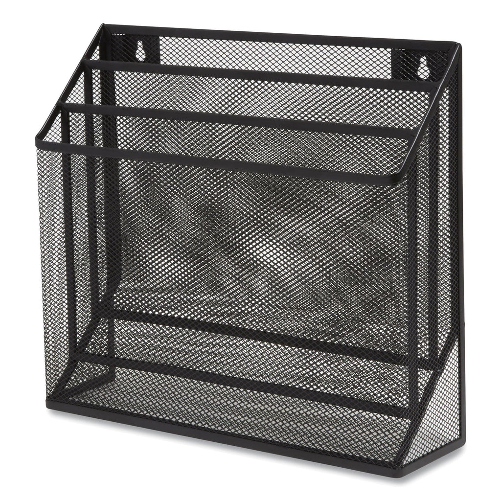 Reduce clutter and improve the overall appearance of your workspace. Inclined design and staggered openings accommodate paper pads, file folders, forms, documents and large-format envelopes. Features a tightly woven metal-mesh body and a sleek, flat-square frame with rounded edges.