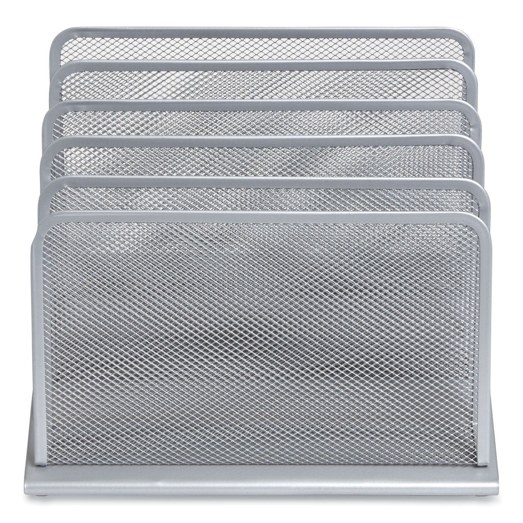 Reduce clutter and improve the overall appearance of your workspace. Inclined design and staggered openings accommodate paper pads, file folders, forms, documents and large-format envelopes. Features a tightly woven metal-mesh body and a sleek, flat-square frame with rounded edges.