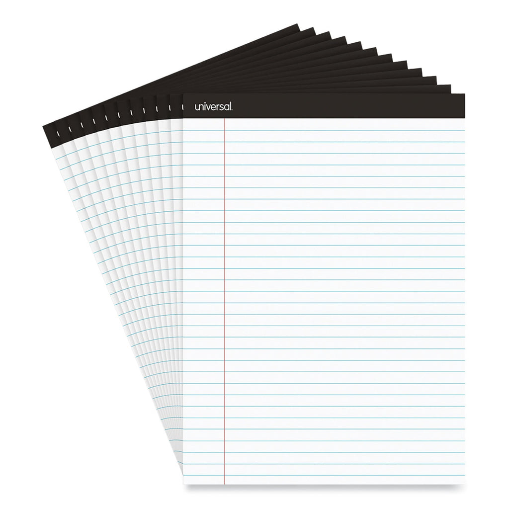 Heavyweight bright white paper with red margin rule is perforated for easy removal. Tasteful black head strip provides a professional appearance. Sturdy heavy-duty back offers support while writing away from a desk.