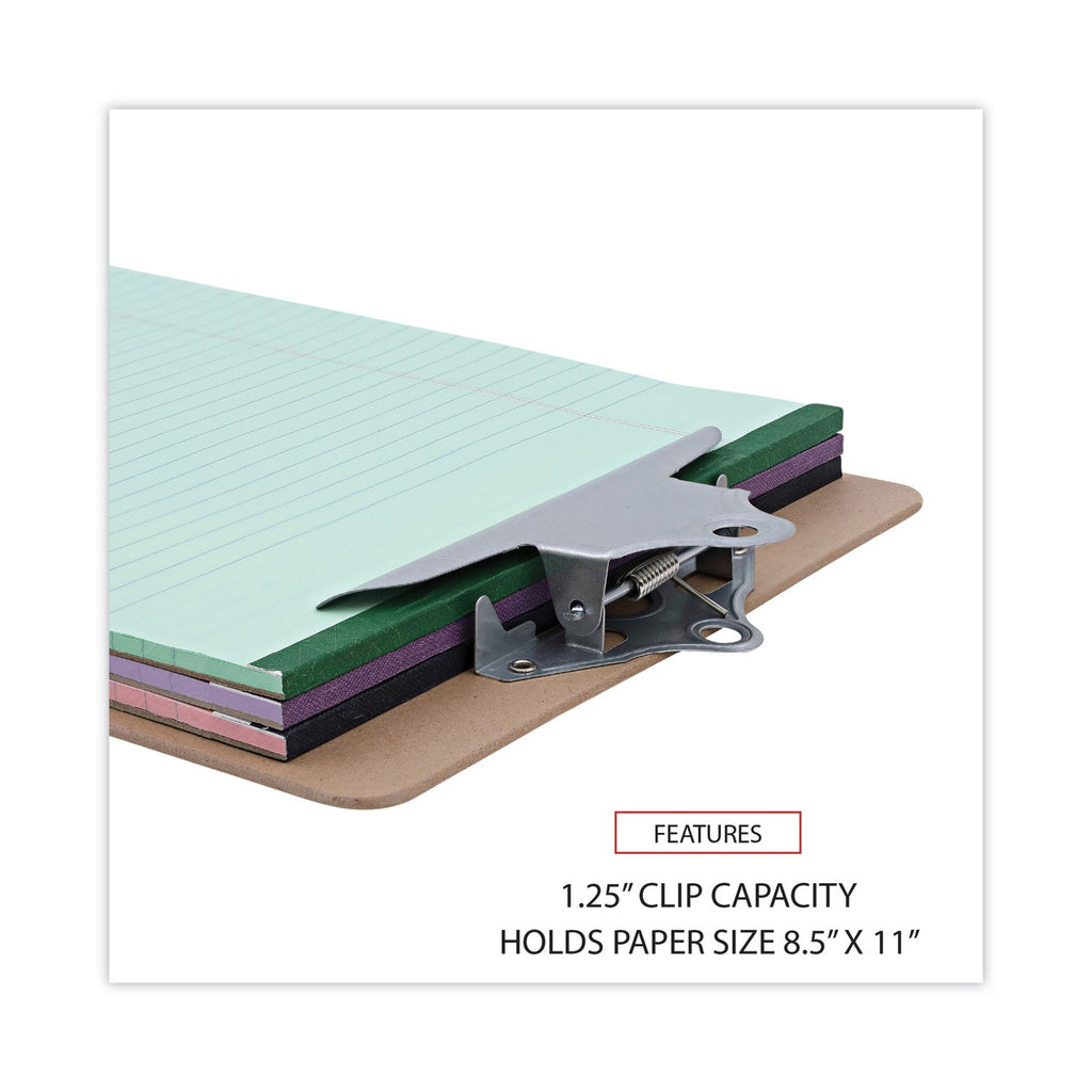 Classic clipboard with a strong, high-capacity clip for gripping documents. Creates a convenient, portable writing surface for filling out forms, sharing documents, and creating sign-up sheets. The smooth surface and rounded edges and corners provide a comfortable hold. The built-in hanging hole lets you get a grip on large stacks or single sheets of paper. Crafted with durable riveted construction for lasting use.