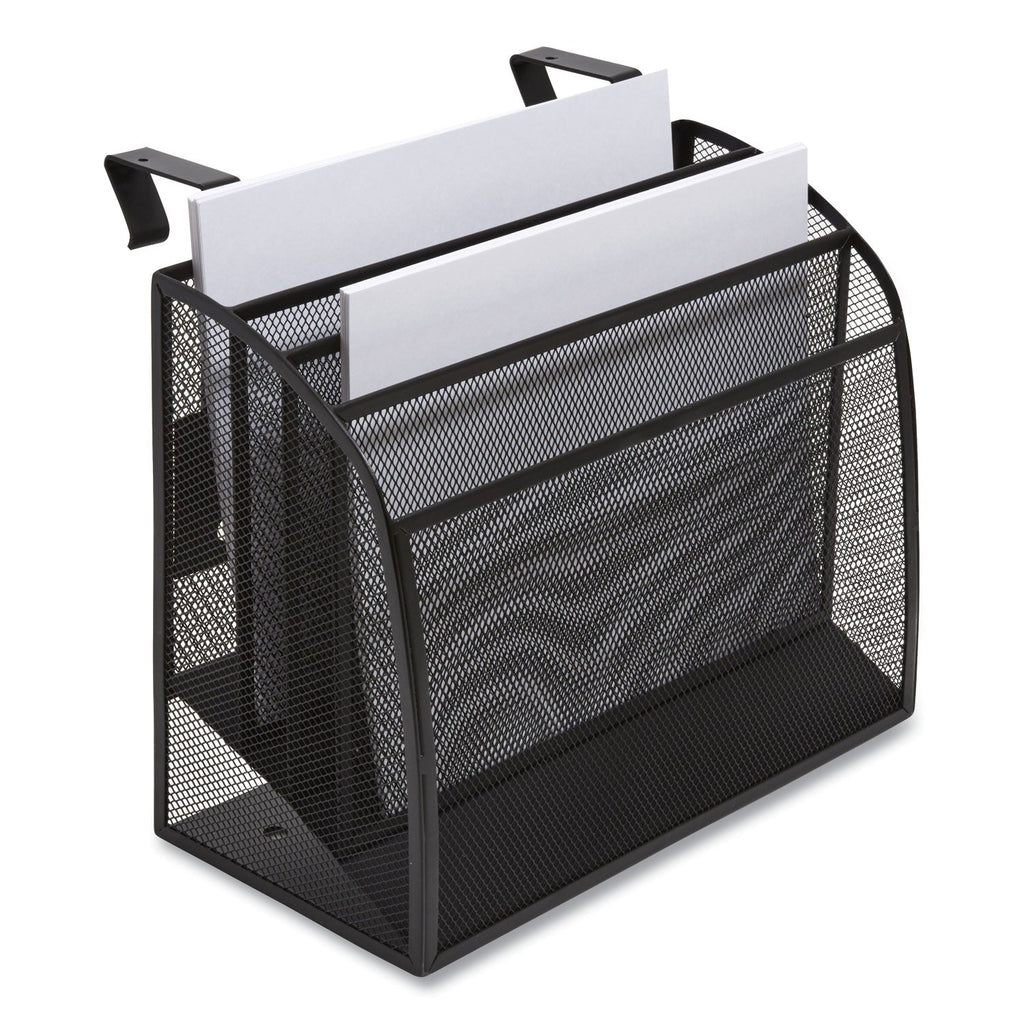 Reduce clutter and improve the overall appearance of your workspace. Inclined design and staggered openings accommodate paper pads, file folders, forms, documents and large-format envelopes. Features a tightly woven metal-mesh body and a sleek, flat-square frame with rounded edges.